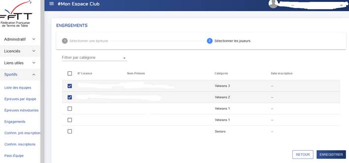 Vous n’avez plus qu’à cliquer sur les licenciés qui désirent s’engager et surtout n’oubliez pas d’enregistrer