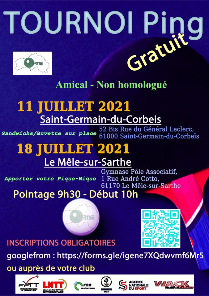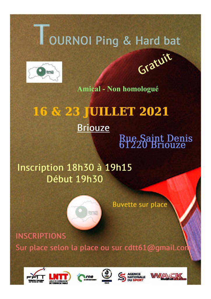 Le CDTT61 organise un grand tournoi amical et gratuit ouverts à tous les jeunes licenciés ! Il se déroulera à Mortagne au Perche (Salle polyvalente près de la piscine) le samedi 10 juillet à partir de 10h (pointage à 9h30) et fin vers 17h.