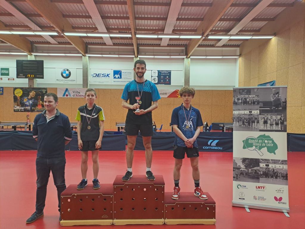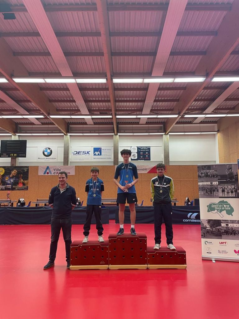 Arthur Aupée (Flers), Jules Guillot (ACATT) et Nathan Robillard (SPOTT).